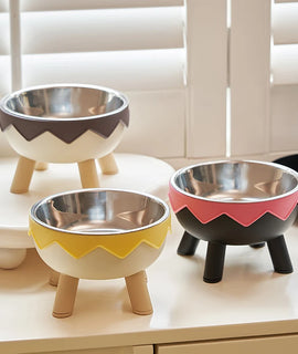 Three in one ergonomic pet bowl set with tilt design and high stand - neck protection, durable PP material