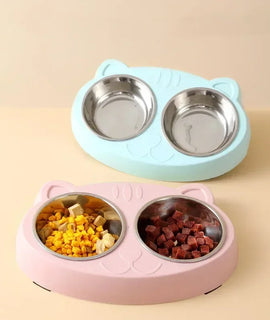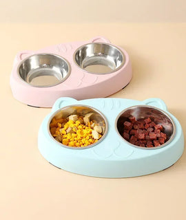 Macaron Pet Double Bowl Plastic Kitten Dog Food Drinking Tray Feeder Cat Feeding Pet Supplies Accessories
