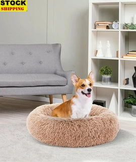 Cozy Anti-Slip Round Dog Bed Soft Plush Waterproof Washable Pet Bed Small Medium Dogs Cats Reduce Anxiety Comfortable Resting