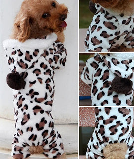Dog Hoodie Hooded Flannel Winter Warm Leopard Printed Pet Puppy Clothes Jumpsuit Pajamas Outwear for Home